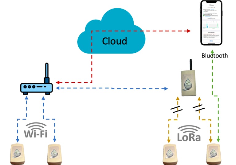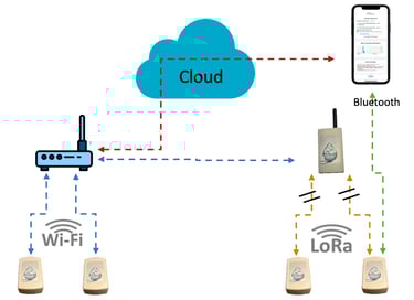 Proprietary LoRa radio protocol, optimized for multi-device management and energy efficiency