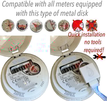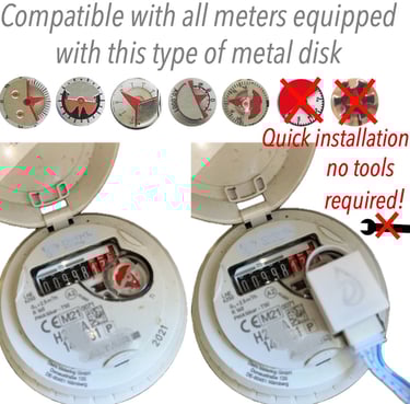 ⚠️ Important: Make sure your water meter has a small metallic wheel that spins with the water flow. This component is required for the sensor to operate properly.
