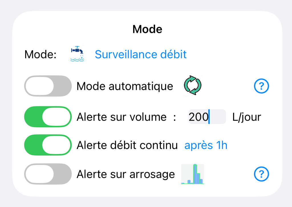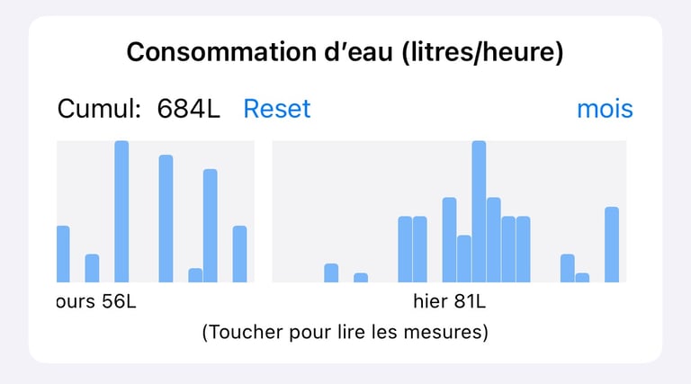 Débit minimal mesurable: 2L/heure (goutte à goutte) si votre compteur d'eau le permet.