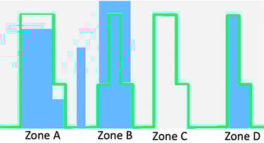 Entre la zone A et la zone B, un débit non prévu déclenche également une alerte.