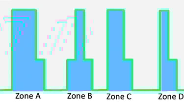 Dans cet exemple, nous avons 4 zones d’arrosage et une plage horaire allant de 0 h à 24 h.
