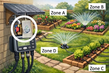 Placé votre débitmètre ou compteur d’eau en amont du programmateur pour surveiller l’ensemble des zones d’arrosage.